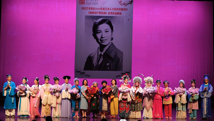 展演中,一代宗师严凤英的嫡传弟子王凤枝和张萍登台与学员和观众们见面。老艺术家们高度赞扬了青年演员精益求精的表演精神,亲切分享了舞台表演技巧。