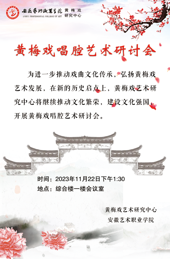 为进一步推动黄梅戏艺术文化传承,弘扬黄梅戏艺术发展,结合学院教学诊改工作,2023年11月22日下午,黄梅戏艺术研究中心召开“黄梅戏唱腔艺术”研讨会。戏曲学院院长汪健参会指导,相关专业教师代表、学生代表参加本次会议。研讨会由黄梅戏艺术研究中心主任王林主持。