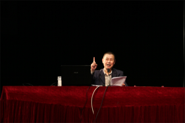 艺术大家的《黄梅戏唱腔与白研究》讲座,通过从本人近六十年的从艺实践出发,阐述了“黄梅戏唱腔”、“黄梅戏白”和“黄梅戏唱与的关系”的相关知识 和技艺,体现了一种工匠精神。讲座理论联系实际,且声情并茂、绘声绘色、幽默风趣,高潮迭起,不断博得在场师生的阵阵掌声。全场座无虚席,连席地而听的众 多学子也是仰着头,张着嘴,细心聆听,铭记于怀。