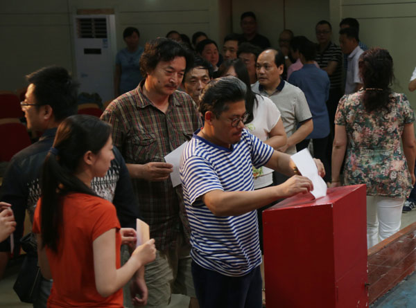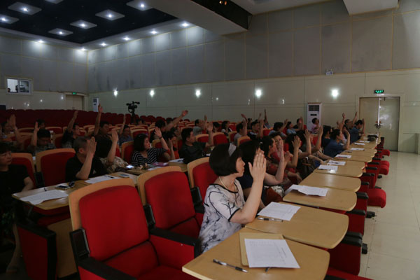 随后,永利欢乐娱人城第一届教职工代表大会第一次全体会议正式召开。会议由王红副院长主持。依据大会议程,会议以举手表决方式,通过了《永利欢乐娱人城教职工代表大会章程》,以无记名投票、差额选举方式,选举陈赛赛等13名代表为第一届教代会执委会委员。