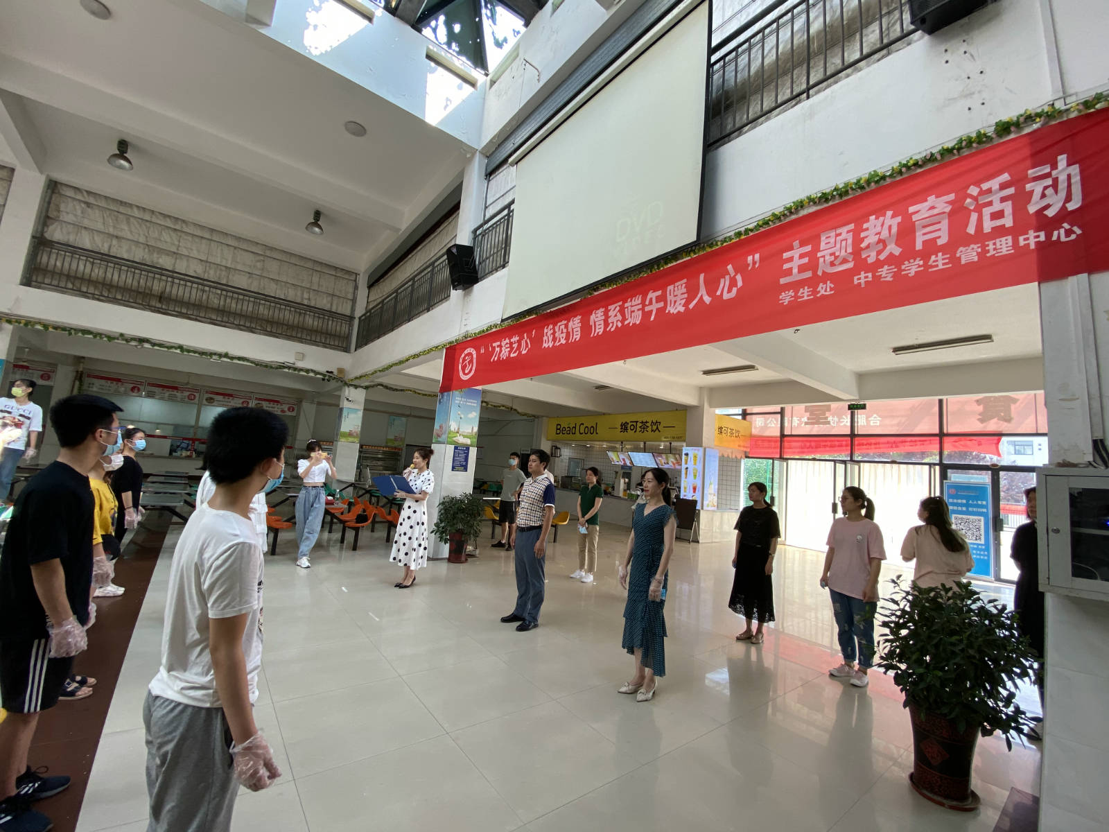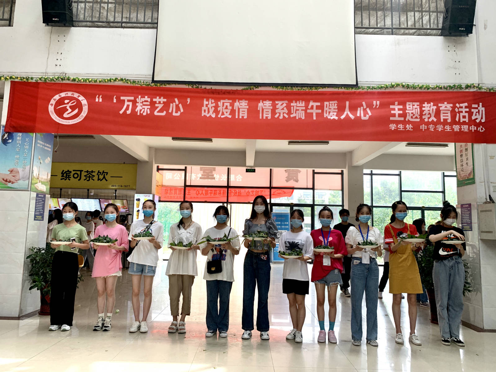 “‘万粽艺心’战疫情 情系端午暖人心”,6月25日至6月26日,学院中专学生管理中心端午节主题教育活动在丹霞路校区学生食堂隆重举行。院学生处副处长、中专中心主任卞振武、副主任田琦、全体辅导员及中专部在校学生一同参加本次活动。