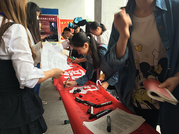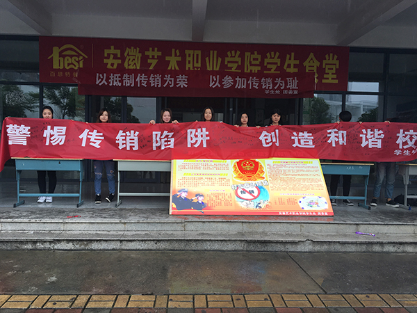 2016年6月3日中午,在永利欢乐娱人城丹霞路校区食堂门口举行了”以抵制传销为荣、以参加传销为耻”的签名活动。
