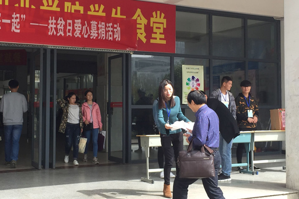 活动中,院团委学生会为全院师生准备了此次募捐活动使用的倡议书并通过广播站提前广泛宣传,意在指出,今年10月17日是国务院确定的第3个“中国扶贫日”,也是第24个“国际消除贫困日”。国家“扶贫日”的设立,充分体现了党中央、国务院对扶贫工作的高度重视,彰显了集中力量扶贫攻坚的决心和信心。扶贫济困历来是中华民族的传统美德,也是国内外成功人士回报社会、体现人生价值的重要形式。
