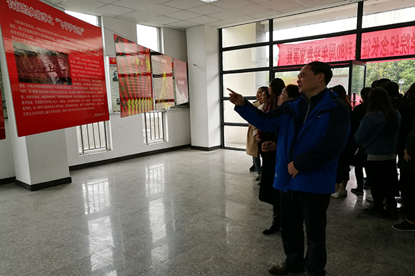 重温长征岁月 ,弘扬长征精神,为纪念中国共产党成立95周年暨红军长征胜利80周年,11月18日,由院学生处团委主办的长征经典故事展在我院丹霞路校区美术楼一楼大厅展出。院党委书记王瑞出席展厅现场,学生处副处长张敏、保卫处副处长叶志刚、院团委书记卞振武、副书记于哲以及各团委委员、各系团总支书记、学生会干部、广大同学一同参观了展览。