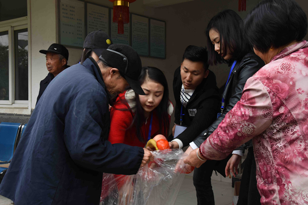 他们的到来是这里,原本寂寞的敬老院里充满了笑声。同学们为老人分发水果,并陪老人聊天。同学们和老人自由交谈的同时,认真倾听老人们讲述着改革开放前后的个人经历,令同学们了解我们今天的幸福来之不易。随后,音乐系的同学们给老人们演唱了一首《映山红》和一首《不忘初心》,还有戏剧系的同学表演了诗朗诵。在老人们一次次的掌声里,本次活动也即将结束。
