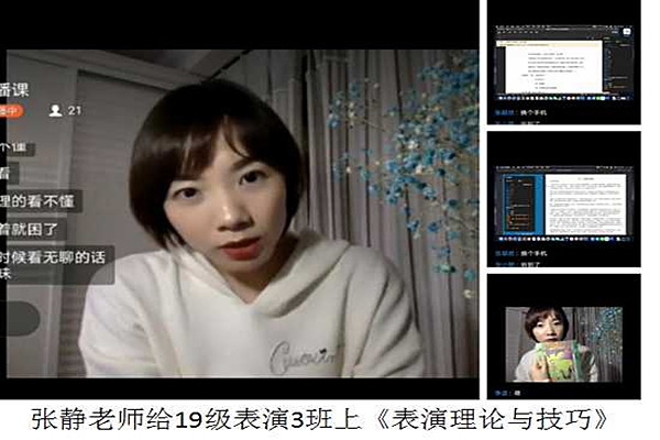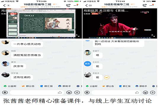 【疫情防控•线上教学进行时】戏剧与传媒学院全面启动“停课不停学”线上教学 来源: 发布时间:2020-02-28 09:31:00 浏览次数: 为落实上级教育部门“停课不停教、停课不停学”要求,戏剧与传媒学院在永利欢乐娱人城领导班子的带领和全盘部署下,积极做好教学计划调整工作,把疫情危机转化为检验和提高学校信息化教学能力和提高艺术教育水平的重要机会。2020年2月27日起,我院全面启动“停课不停学”工作。 为确保线上教学高质量开展,戏剧与传媒学院及时调整教学安排,将教学课程细分为理论课、实践课、毕业论文指导课。其中理论课程、毕业论文指导课以及部分实践课程利用直播平台线上教授,其他实践课程适当延期。 戏剧与传媒学院本学期开设的所有理论课程都将实现“线下课堂”到“线上课堂”的迁移。学院在超星平台上精心挑选16门精品课程供学生自主学习,部分课程安排教师指导学生学习,在线为学生答疑解惑;在钉钉平台上,学院以“PPT+视频(音频)直播+作业布置+线上交流”模式组织各项教学活动。学院还专门组建网络课程监管小组,院长高翔担任组长,副院长张静担任副组长,对线上教学进行严格监管。 戏剧与传媒学院充分利用教育信息化平台,开创教学新模式,实现跨时空互动教学,线上教学工作得以顺利开展,不影响学生学习和成长,真正做到了停课不停教、停课不停学。网络课程精彩纷呈,课堂平稳有序、气氛热烈,展现了我院师生积极乐观的精神风貌和勇于担当的作为意识,在网络课程中的“手拉手、心连心”传递了知识、关爱和温暖,让疫情防控期间的各项教育教学工作有力度、有温度。
