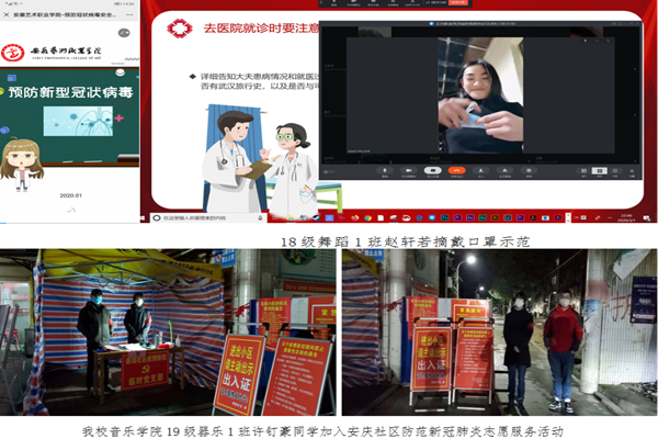 为了打赢疫情防控阻击战,进一步做好我校疫情防控工作,根据安徽省委省政府、省教育厅和我院有关工作部署,近日,院学生处下发《关于疫情期间组织开展“防控疫情 人人有责”网络主题班会活动的通知》,各二级学院、中专学生管理中心全校187个班级积极响应,于2月26日至3月1日组织开展了“防控疫情 人人有责”网络主题班会活动。通过线上视频交流,对学生进行疫情防控工作和思想引领工作。