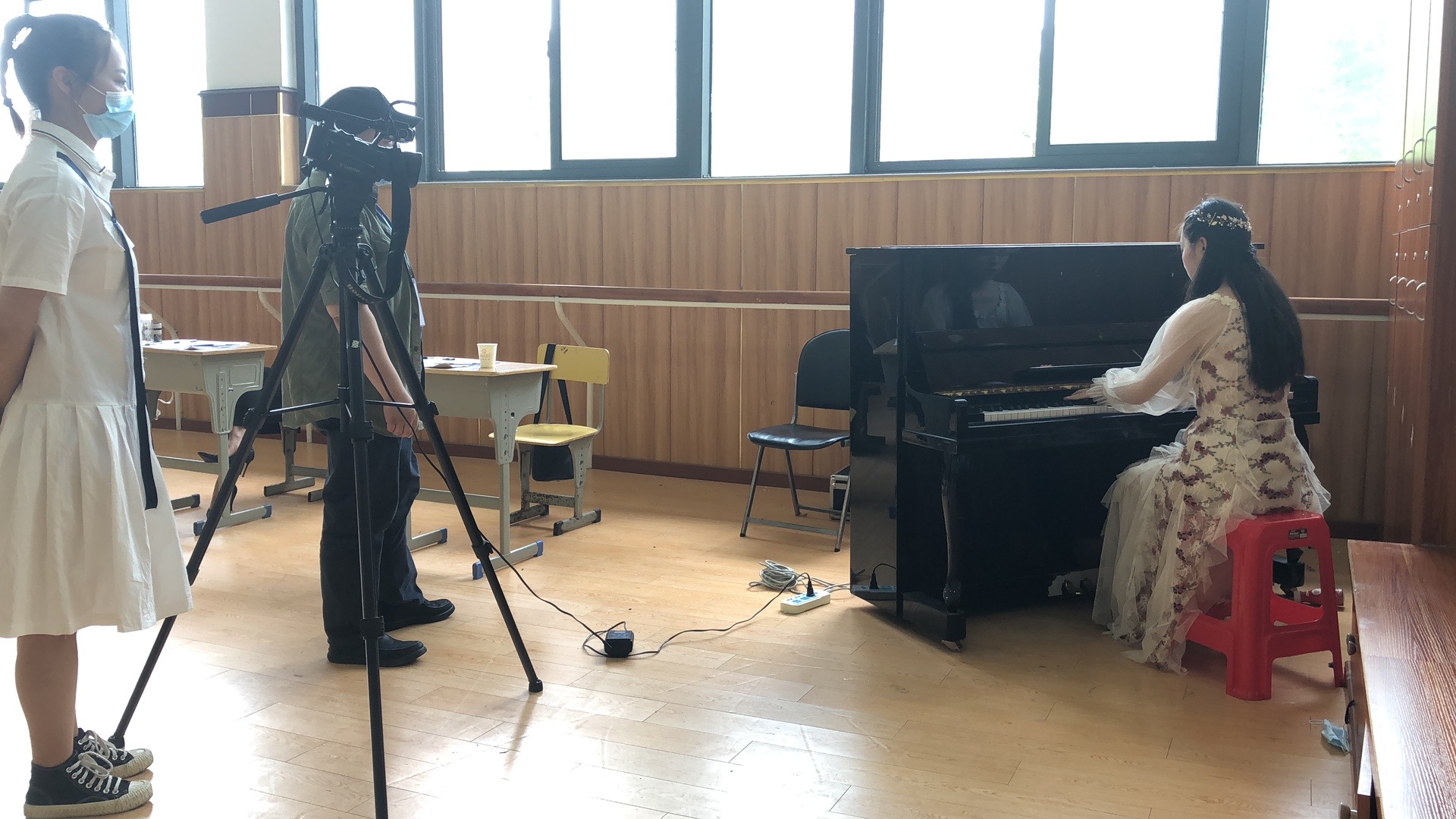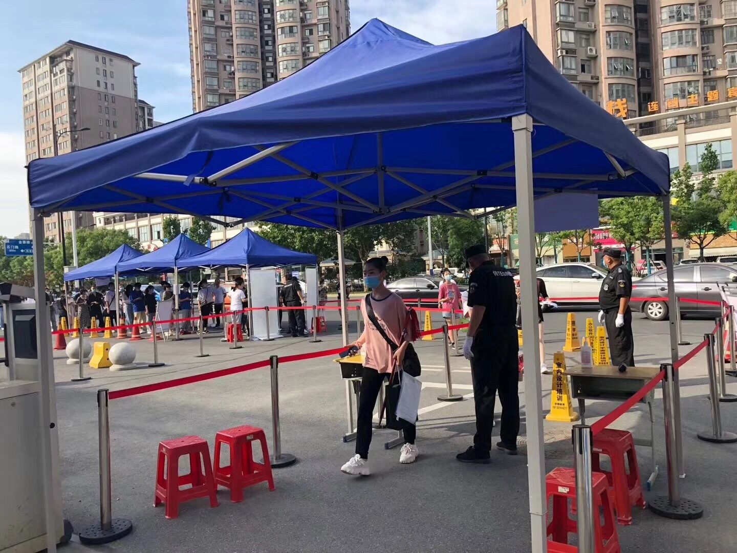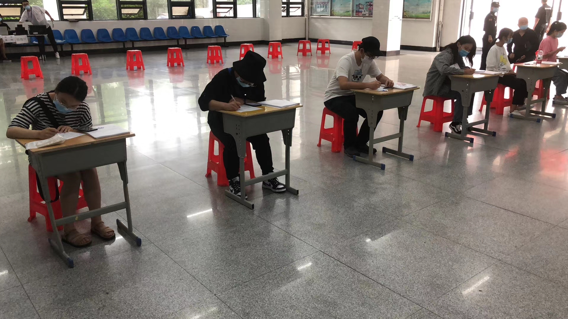 报名、考试当日,考区内准备了充足的防疫物资、设备,并严格执行防疫管控方案。在候考场地摆放一米凳,免洗抑菌洗手液;多次喷洒消毒液,确保场地通风;所有考生由学校丹霞路大门进出,佩戴口罩、扫“安康码”、测体温;考生在进入考点大门、候考场、考场内均需测量体温;为防止考试当日候考考生人员过多、聚集,在编制准考证到考时间时按每半小时五十名考生候考进行分流安排等等。