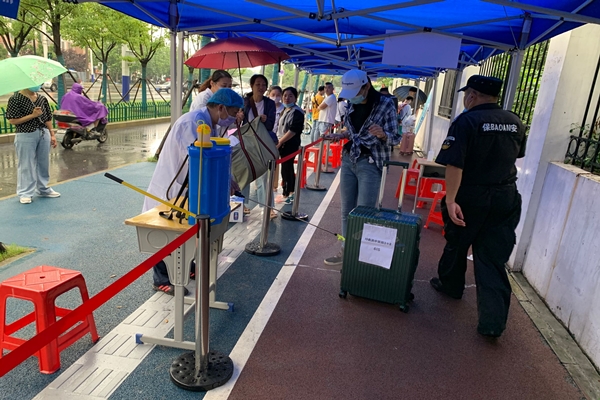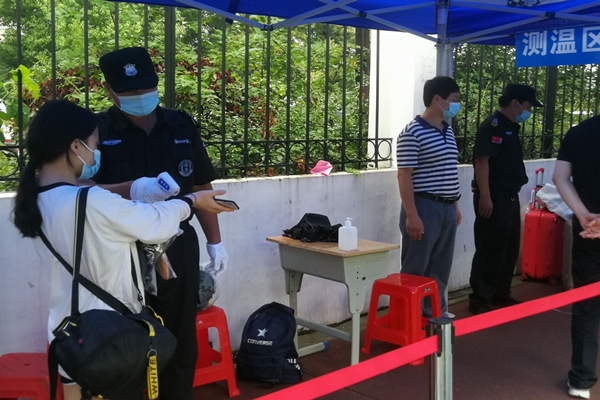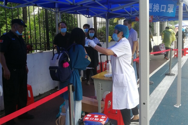 6月15日上午,我院迎来了首批返校学生,学院党委书记王瑞、院长张云、副院长王红等到现场指导学生返校工作,中专中心全体辅导员、班主任老师在现场迎接学生。学生在学校门口,每人间隔1米以上的距离,排队进行一系列检测。按照《永利欢乐娱人城2020春学期学生返校工作方案》要求,返校学生需依次进行安康码验核、体温检测、行李消毒、更换新口罩、手消,然后核验身份、领取报到通行单,方可进入校园。之后再凭报到通行单和“钉钉校园通行码”,经过二次测温和手消后才能进入宿舍。返校学生在老师的引导下,依次完成各项返校流程,有序地回到校园、进入自己的宿舍。在返校日期间,学生处、中专中心团总支还专门组织了志愿者服务团队,为有需要的学生搬运行李物品,提供志愿服务。