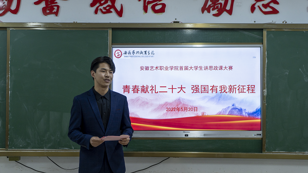 为深入贯彻落实习近平新时代中国特色社会主义思想和习近平总书记关于深化思政课改革创新的重要指示精神,推进“大思政课”建设,引导广大青年学生热爱思政课、学好思政课,5月20日下午,永利欢乐娱人城“青春献礼二十大,强国有我新征程”——首届“大学生讲思政课”比赛在美术楼512举行。学院党委副书记、院长张云,党委委员、纪委书记蒋成义,党委委员、院办公室主任朱贵飞出席本次活动。马克思主义学院专兼职思政教师及百余名学生参加此次活动。
