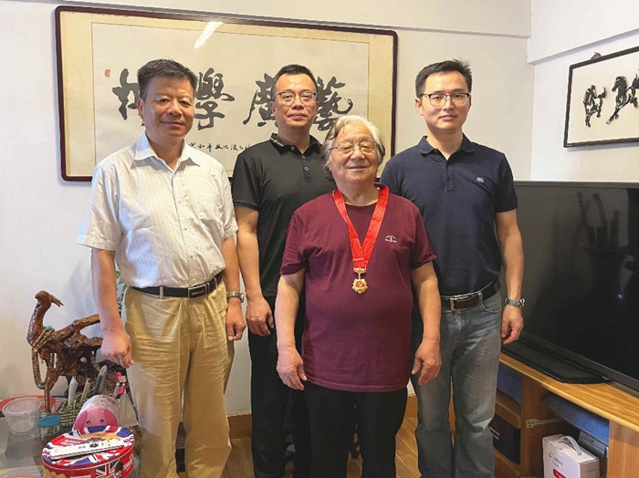 6月29日,在建党101周年到来之际,学院党委委员、副院长秦励,党委委员、纪委书记蒋成义,离退休党支部书记姚成秀等来到老同志家中,向2022年党龄达到50年老党员王效会、吴安明两名同志颁发“光荣在党50年”纪念章。
