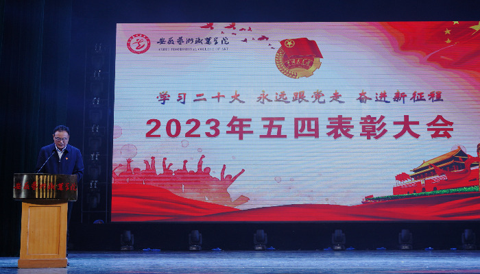 为深入开展学习贯彻习近平新时代中国特色社会主义思想主题教育,深入学习宣传贯彻党的二十大精神,教育引导广大团员听党话、跟党走,营造争先创优、典型示范的浓厚氛围,2023年5月10日晚,学院在丹霞路校区舞蹈楼剧场隆重举行“学习二十大 永远跟党走 奋进新征程”五四表彰大会暨文艺汇演。党委书记毛德权,党委委员、副院长秦励出席活动,各二级学院党政负责人、有关部门负责人、院团委委员、各团总支书记、受表彰人员以及师生代表参加活动。大会由院团委书记卞振武主持。