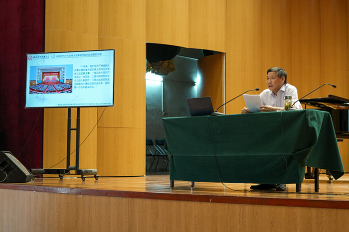 张云结合学习贯彻习近平新时代中国特色社会主义思想和党的二十大精神,从“新时代十年的伟大变革到学院的新发展新成就”“从中国式现代化的内涵中汲取学院改革发展的密码”,以及“自信自强,团结奋斗,向着新征程的目标继续前进”三个方面作了专题报告。
