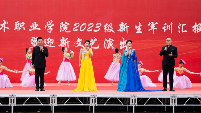2023级新生军训汇报结束后,院领导、师生代表与2023级新生一起观看了精心编排的迎新文艺演出。