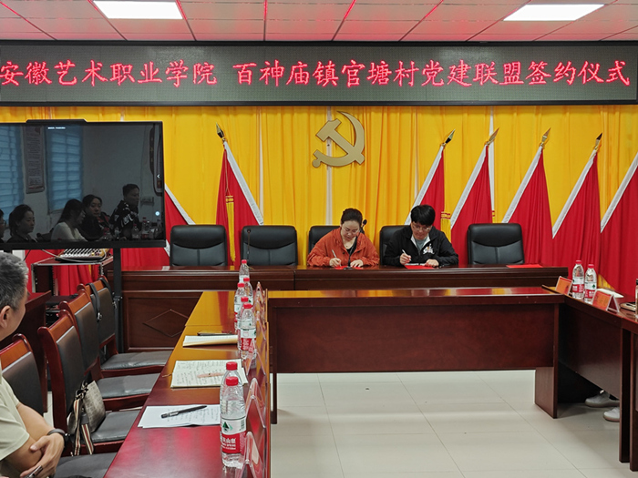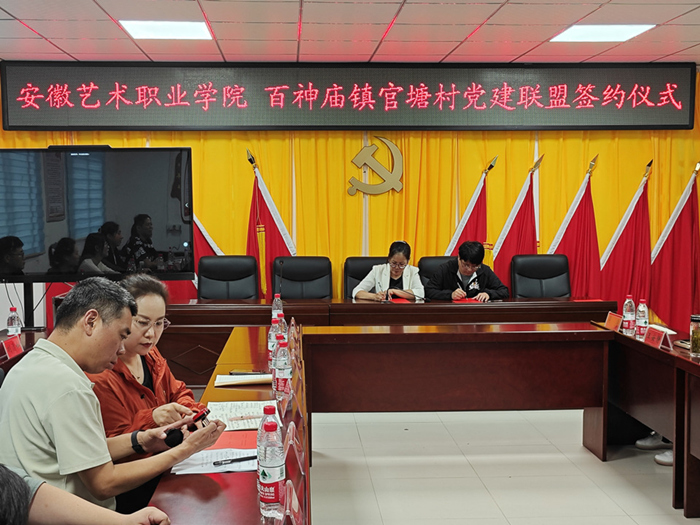 学院党委委员、组织人事处处长、音乐学院院长童惠,学院纪委委员、音乐学院党总支书记谢倩,舞蹈学院党总支书记、组织人事处副处长张云涛出席签约仪式。官塘村第一书记邹军君,舒城县委编办和百神庙镇党委、政府负责人等参加活动。官塘村党支部书记许杰主持会议。