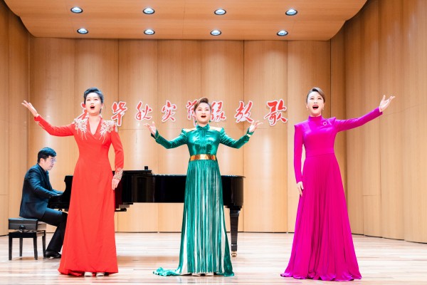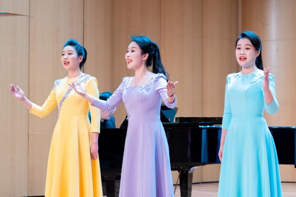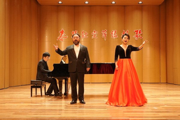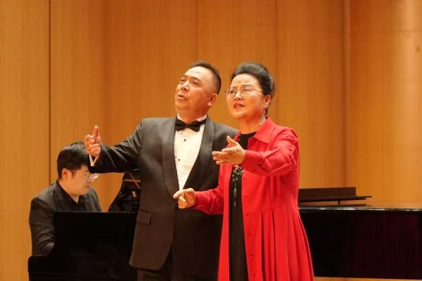 整场音乐会编排独具匠心,曲目不仅有中国各地的民歌,如山西襄汾民歌《梦梦》、朝鲜族民歌《鸟打令》等,还有中外歌剧选段,如《塞尔维亚老城墙边》《我要生活在美梦中》等,用独唱、二重唱、合唱等多种形式呈现,表演声情并茂,感人至深。在学生们的精彩演唱之后,曹教授登上舞台,和现场观众分享了她在音乐教育事业上一路走来的经历,表达了对学院大力支持声乐教育教学事业的感谢之情。随后,曹教授和邝实教授共同演唱了《老师我想你》,将现场氛围推向了最高点,音乐会也在不息的掌声和绕梁的余音中画下了圆满句号。