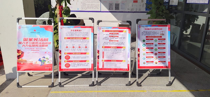 加强宣传,突出成效学院采用多种方式,通过学院网站、微信平台等新媒体平台发布宣传海报,在广播站播放宪法法律知识,利用移动宣传展板展示纸质宣传海报,面向全院师生做好相关法律宣传教育。在本次活动中,突出宣传了习近平新时代中国特色社会主义思想特别是习近平法治思想、习近平总书记关于宪法的重要讲话和重要指示批示精神,推动教育系统广大师生深刻领悟“两个确立”的决定性意义,增强“四个意识”,坚定“四个自信”,做到“两个维护”,确保宪法宣传的正确政治方向和舆论导向。要注重在宪法学习宣传教育活动中,讲好中国宪法故事,使宪法精神深入人心,让青少年学生树立宪法法律至上的法治理念,引导青少年学生坚定不移走中国特色社会主义法治道路。