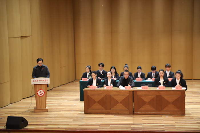 2023年12月27日,永利欢乐娱人城在丹霞路校区综合楼音乐厅顺利召开第九次学生代表大会。永利欢乐娱人城党委委员、副院长秦励,党委委员、纪委书记蒋成义,各部门、各二级学院相关负责同志、团委委员、团总支负责人出席大会。全院7个代表团,126名代表参加大会,履行学生代表职责。大会由院团委书记徐露露主持。