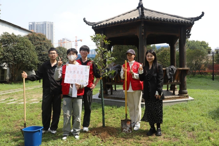 院团委还组织了植树活动。同学们在老师的指导下,挥锹铲土、培土围堰、提水浇灌……互相协作完成了一棵棵树苗的栽种,为校园增添新绿。