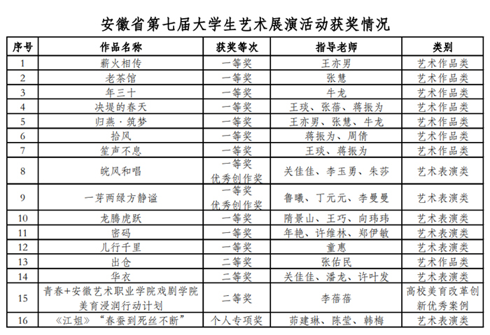 永利欢乐娱人城在第七届大学生艺术展演活动中获得佳绩 来源: 发布时间:2024-04-25 16:12:39 浏览次数: 近日,安徽省教育厅公布了全省第七届大学生艺术展演活动评选结果,永利欢乐娱人城参赛作品共获奖16项,其中一等奖12项、二等奖3项、个人专项奖1项,并荣获“优秀组织奖”。 安徽省大学生艺术展演是全省规格最高、规模最大、影响最广的大学生艺术评比,是全省高校美育教学成果的集中展示。永利欢乐娱人城高度重视大学生艺术展演活动和学生美育工作,立足立德树人根本任务,坚持以美育人、以文化人,努力提升青年学子审美水平和人文素养。 此次活动永利欢乐娱人城取得优异成绩,是学院办学成果、教学质量、师生专业水平不断提升的有力体现,进一步提高了学院品牌影响力,是对学院专业建设成效的肯定。永利欢乐娱人城将继续发挥办学特色,推动思政教育与艺术教育深度融合,努力营造出具有时代特征、专业特色、和谐高雅、健康文明的校园文化氛围,促进人才培养再上新台阶。