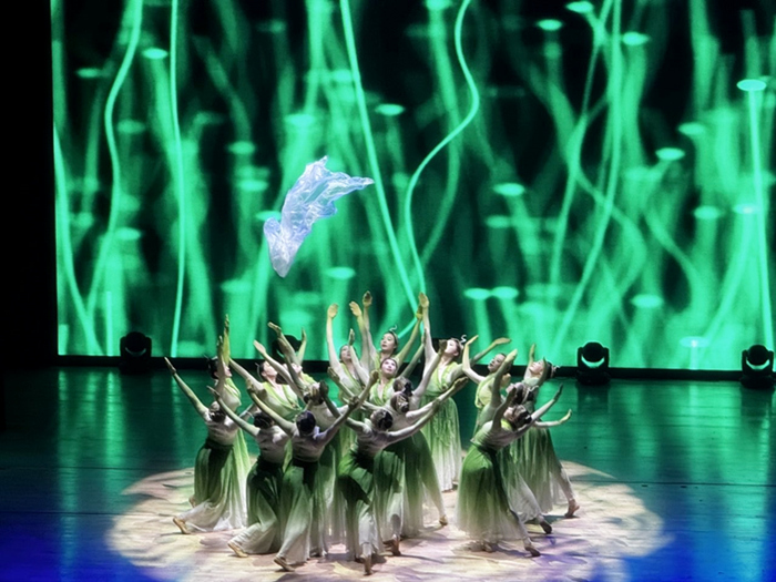 2024年9月25日,由安徽省教育厅主办的“全省大学生庆祝中华人民共和国成立75周年暨全省第七届大学生艺术展演活动汇报演出”在滁州成功举办。永利欢乐娱人城原创舞蹈剧目《一芽两绿方静谧》参加此次活动。