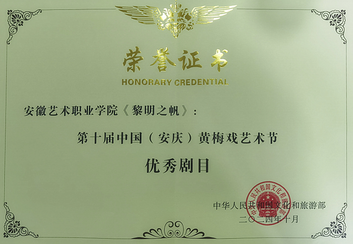 在10月8日闭幕的第十届中国(安庆)黄梅戏艺术节上,永利欢乐娱人城原创大型黄梅戏《黎明之帆》荣膺“优秀剧目”。