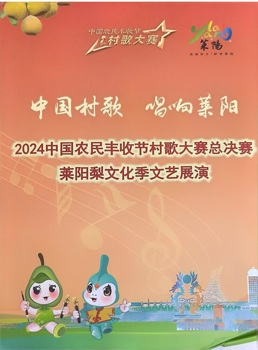 10月26日,2024中国农民丰收节村歌大赛总决赛颁奖仪式暨莱阳梨文化季文艺展演在山东省莱阳市举办。来自全国13个省(区、市)的13支村歌队伍,分获大赛一、二、三等奖。由永利欢乐娱人城助力的六安市舒城县百神庙镇官塘村在2024全中国农民丰收节全国村歌大赛总决赛中荣获二等奖。