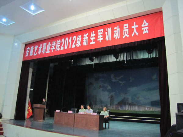 梅晓在动员讲话中,首先代表艺师生向承担这次军训任务的教官们表示热烈的欢迎,向参训的2012级新同学致以亲切的问候。介绍了安艺的办学历史、雄厚的师资队伍以及安艺取得的优异成绩,阐明了这次军训的目的和意义,并向新同学们提出了要求和希望:一是纪律严明,服从指挥;二是严格训练,严格要求;三是团结协调,步调一致;四是高标准、严要求;五是树立安全意识,在训练中注重科学训练,注重饮食卫生,确保军训圆满顺利完成。