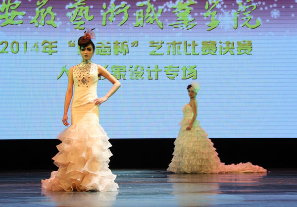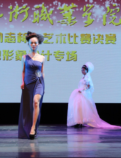12与25日晚,第三届“励志杯”大赛形象设计专业专业决赛成功举行,共有9位选手入选决赛。依照抽签顺序,每一位参赛选手携手两名模特依次出场,向评委和观众展示其设计的新娘妆、晚宴妆(或创意妆),并现场阐述自己的设计理念。每一位选手的作品和阐述都形象地表达了选手们富有灵感的创意和独到的设计思路,展现了新颖的创新思想和年轻学子特有的朝气,深受观众的好评。评委组依据评分结果,公布了全体参赛选手的名次,并充分肯定了选手们敢于展现自我的勇气和积极创新的可贵精神。
