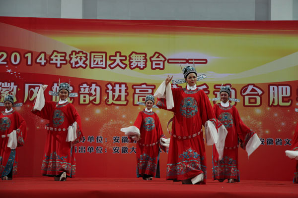 2014校园大舞台――“徽风皖韵进高校”活动由安徽省教育厅、中共省委宣传部、安徽省文化厅主办,安徽大学艺术与传媒学院、永利欢乐娱人城承担演出。活动旨在通过具有浓厚安徽地方特色的音乐、舞蹈、戏曲等艺术展演,为各大高校师生带来“徽风皖韵”艺术精品的享受,有利于我省高校进一步营造健康、高雅的校园文化艺术环境。