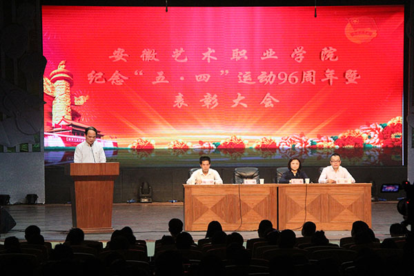 5月4日下午,学院在宣城路校区实验剧场隆重召开纪念“五四”运动96周年暨共青团表彰大会及文艺演出,学院各部门、各专业系领导班子成员,受到表彰的先进集体、先进个人及学生代表参加了表彰大会,院党委书记王瑞、院长张云、副院长王红出席会议并观看演出。