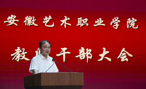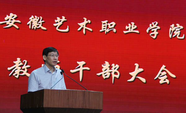 6月2日上午,学院在宣城路校区剧场召开领导班子及成员2014年度考核大会,对2014年度落实党风廉政建设“两个责任”和惩防体系建设及院党政领导班子及成员履职情况进行考核。省委教育工委考察组成员到会指导。学院领导班子成员,副处级以上干部、副高以上职称人员参加了会议。会议由学院党委书记王瑞主持。
