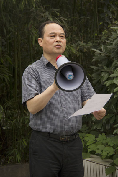 省地震局防震救灾与应急救援处调研员金紫薇、副主任科员成业明来到学院进行现场指导,演练结束后,金紫薇进行了点评。