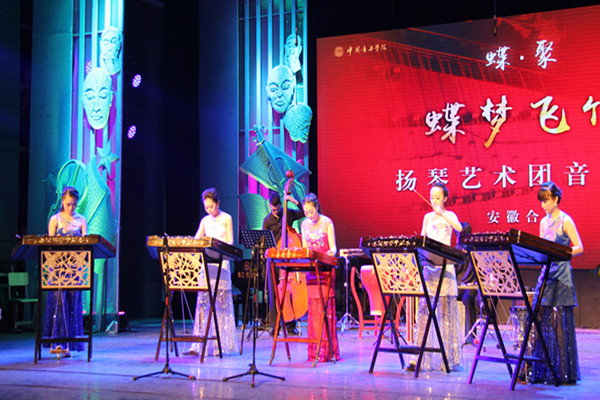 2015年6月13日晚,我院校友、著名扬琴演奏家、中国音乐学院教授李玲玲带领的“蝶梦飞竹”扬琴艺术团,在学院实验剧场成功举办“蝶・聚”专场音乐会。学院院长张云、副院长王红、安徽省音协主席盘龙、副主席周晓平等出席并观看本次演出。