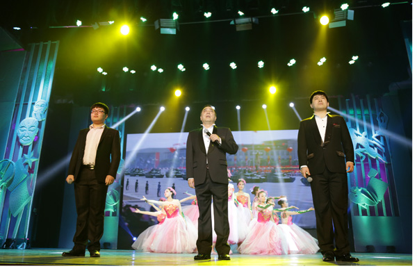 演出分“水深火热”、“寸土不让”、“重放光芒”三个篇章,高度凝练地再现了中国人民团结在共产党周围,同仇敌忾、坚持抗战的壮丽画卷,讴歌了不屈不饶、追求中华民族独立与解放的伟大精神。这是一场献礼抗日战争胜利七十周年的专题演出,也是一次全院教育教学水平和师生艺术实践水平的展示,是向社会全面展示我院在艺术人才培养、艺术作品创作成果的舞台。在观看演出的过程中,三位院领导不时交换意见,就晚会的风格、内容、形式等问题进行深入探讨,在总结师生智慧的基础上,加以升华提高。