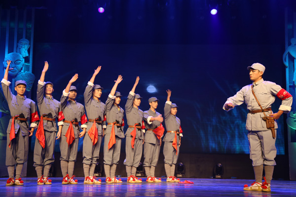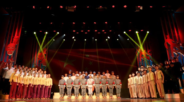 此次演出,是我院为深入贯彻党的十八大、十八届三中、四中全会精神,充分发挥文化艺术精品育人化人的重要功能,旨在通过经典的艺术作品,尽情抒发热爱党、热爱祖国的情怀,弘扬爱国主义的优秀传统。学院领导班子高度重视此次专题演出。从6月起,专题演出各项工作在院领导的部署下有序推进;主创团队牺牲暑假的休息时间,全身心地投入编创排练工作中。张云院长分阶段亲自召开数次创作研讨会,要求主创班子力求取得思想性和艺术性的高度统一和最大融合。经过一百多个日日夜夜的精心编排和不断打磨,集全院之力,百名师生同台,终于呈现出一台历史与时代交相辉映、艺术与现实高度融合、既铭记历史又鼓舞人心的庄严厚重的专题演出。