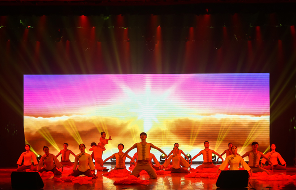 晚19:00时,安徽师范大学花津剧场内,人潮攒动,伴随着雄浑的乐曲,演出的大幕徐徐拉开,高水平的演出不时博得在场观众潮水般的掌声。在节目编排上,将整场演出按抗日战争的历史阶段结构为“国难”、“热血”、“胜利”三个篇章,汇聚了舞蹈、声乐、戏曲、朗诵等多种艺术形式,主题鲜明、内容丰富、形式多样、精彩纷呈。我院师生精湛的表演、高超的艺术水平充分展现出我院教育教学的累累硕果,艺术团全体演职人员为安徽师范大学的师生奉献了一场回顾历史、艺术再现、鼓舞人心,时代共鸣的精彩演出。演出结束后,张云院长等领导走上舞台,亲切地和演职人员握手交谈并合影留念,祝贺演出取得圆满成功。