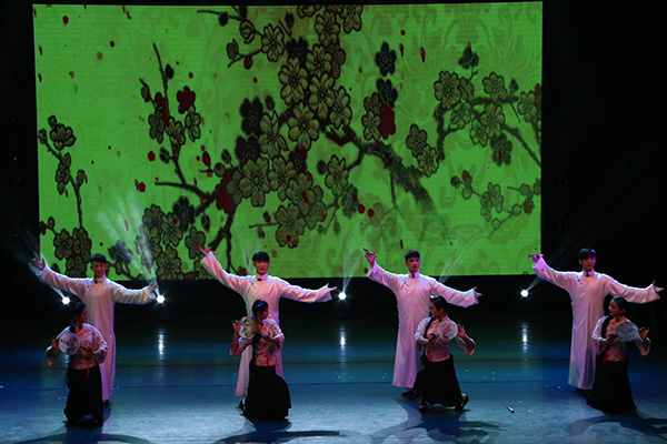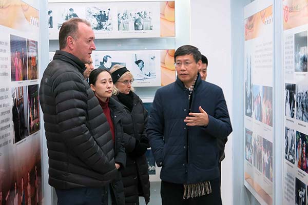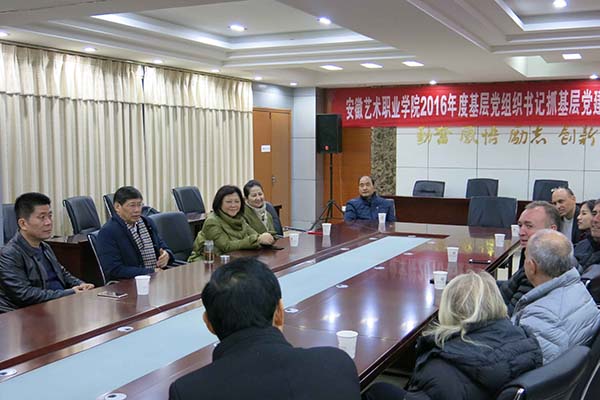 张云院长、王红副院长向来访的中外嘉宾致以热烈欢迎,并陪同参观校史展厅,向来宾们介绍了学院办学历程。面对校史展示六十年弦歌飞扬的办学历史,一代代硕果累累的人才培养成就,中外来宾们直观了解到安艺所具有深厚的文化底蕴和艺术内涵。在院领导陪同下,沙龙?阿萨亚格先生等中外来宾欣赏了学院的安徽文化艺术教学成果展示。黄梅飘香,徽韵民乐,洋溢着浓郁的安徽民间生活气息的民间歌曲,渲染着安徽秀美山川气象的民间舞,展现出一副美好安徽的锦绣画卷。沙龙?阿萨亚格先生一行中外嘉宾陶醉于歌舞丝竹营造出的徽风皖韵氛围中,赞叹不绝。