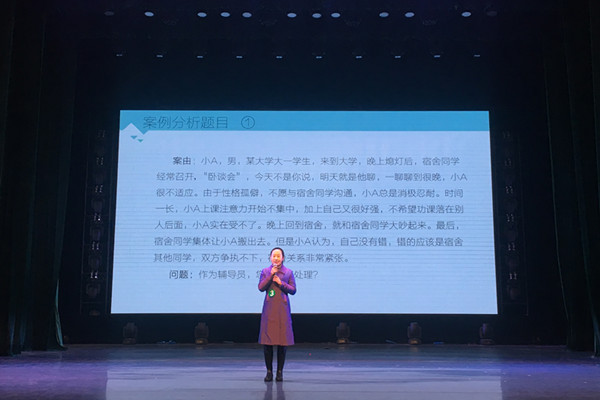 大赛分为笔试、主题班会、主题演讲、谈心谈话、案例分析五个环节。18名参赛选手结合自身实际,立足岗位职责,以扎实的理论素养通过了笔试环节的考查;在命题演讲中饱含激情地倾诉着辅导员们的“初心”与“使命”; 谈心谈话环节在矛盾冲突中春风化雨、因材施教;案例分析环节彰显了辅导员应对突发事件的果敢与敏捷。两天的赛程,彰显了我院辅导员在学生思想政治教育与日常管理工作中围绕学生、关照学生、服务学生的职业信仰与敬业精神。经过激烈的角逐,中专中心赵珍荣获一等奖;中专中心姚婷婷、音乐系张媛媛荣获二等奖;中专中心彭克富、汪燕,综艺系徐婷荣获三等奖;其他辅导员荣获优秀奖。