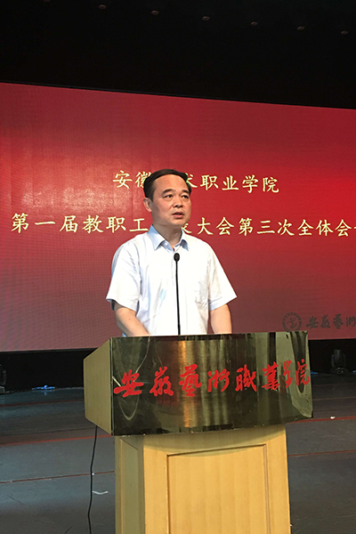 王瑞书记代表学院党委做了总结讲话,对教代会第三次全体会议的成功召开表示热烈祝贺。他指出:本次会议是在学院全面贯彻落实党的十八届六中全会精神、深入推进“两学一做”学习教育常态化制度化,迎接党的十九大胜利召开之时举行的一次重要会议。张云院长代表学院所做的工作报告,全面总结一学年来改革发展取得的成绩,提出了新学年的总体工作思路。在征集本次会议议案的过程中,与会代表围绕学院改革发展的大局,建言献策,提出了许多建设性意见和建议,反映了教职员工的心声,表达了对加快学校发展的迫切愿望和坚定信心。我们要坚持以习近平总书记视察安徽重要讲话为引领,进一步发挥好教代会在团结全院广大干部职工,凝聚广大教职工智慧的作用,在学院党委的坚强领导下,全力以赴抓好新学年的各项重点工作,奋力开启“十三五”发展新局面,统一思想,凝聚共识,切实增强加快发展的责任感紧迫感;创新思路,真抓实干,扎实推进各项工作部署的贯彻落实;从严要求,驰而不息,继续深入推进全面从严治党。全院教职工围绕一个共同的奋斗目标,齐心协力,团结一致,共同开启学院改革发展的新篇章,为安艺的美好明天奋发前行。