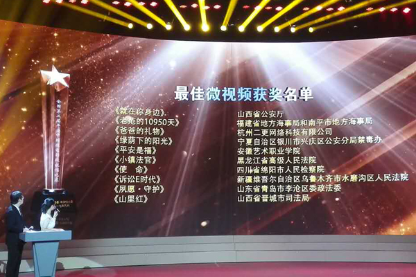 2017年9月6日晚,中央政法委、中央综治办共同主办的全国第二届平安中国微电影微视频颁奖晚会在北京国家公安部礼堂举行。永利欢乐娱人城创作拍摄并制作的微视频《平安是福》,经层层选拔,最终在2816部有效参赛作品中脱颖而出,荣获全国“最佳微视频”奖,全国仅有20部参赛作品获此殊荣。