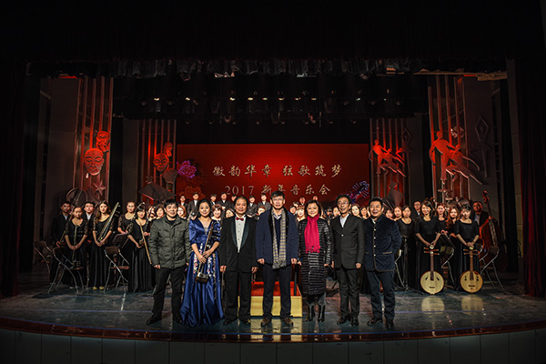 2017新年音乐会是民乐团为全院师生员工精心准备的一台独具特色的民族音乐“跨年”盛会。器乐合奏、二胡独奏、唢呐、民乐伴奏独唱三重唱等节目形式多样、异彩丰呈。乐团精湛的演奏技艺、生动的表现能力、精美的舞台画面、浓郁的民族音乐特色,让师生观众们沉浸在徽韵华章的优美旋律中,感受“美好安徽”的魅力,畅想学院新年的发展前景,陶醉忘返,其乐融融。全院师生在高雅艺术的审美体验中,焕发热情,凝聚一心,筑梦未来,迎来充满生机和希望的2017新年。