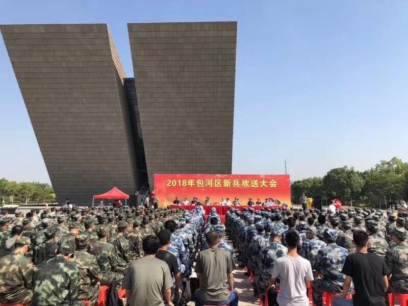 2018年9月8日上午,我院入伍学生在渡江战役纪念馆南广场统一参加了由包河区政府和区人武部举办的“2018年新兵欢送大会”。在欢送会上,入伍学生身穿戎装、胸带红花、整装待发,他们即将奔赴祖国各地为担负起巩固国防、建设祖国的神圣使命而奋斗,今年我院从包河区报名入伍学生共19人,通过体检、政审、集训等环节,最终有13名学生确定为合格的新兵,这13名学生分别为美术系:房宫傲、张胡好、蒋文杰、魏伟、马微尘、汪非凡、鲁大鹏、唐硕、李太仁;戏剧系:李林翰、张耀威;综艺系:胡伟豪;国际学院:王俊。以上学生将分别去北京仪仗队、北京警卫师、上海东海舰队、哈尔滨飞行学院、新疆陆军机场地勤、湖南武警等地。以上学生为守卫祖国的安宁和人民的幸福,为祖国强军梦增添新力量。