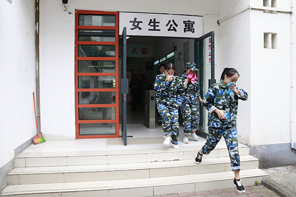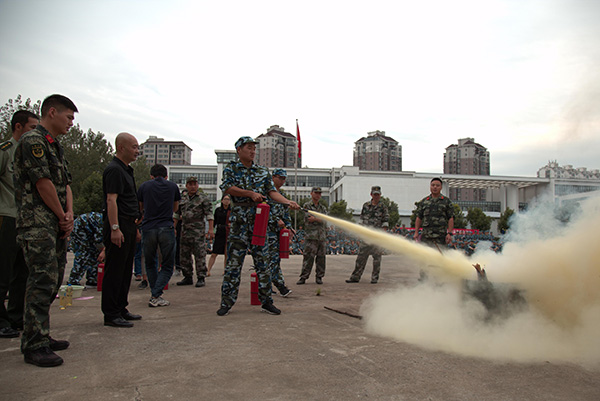 讲座之后,分两个校区同时开展了消防应急疏散演练和现场使用灭火器灭火演练,在保卫处、学生处和军训教官的组织下,全体新生进行了火灾发生时的应急疏散、紧急避险演练,迅速有序地撤离到安全地带。新生还在消防官兵的指导下进行了灭火设备的实际使用演练,从而进一步加深了对消防安全知识的理解与运用。