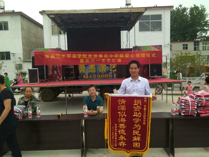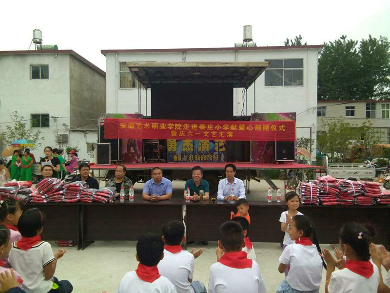5月28日,在“六一”国际儿童节来临之际,我院党委委员、纪委书记姚成秀一行,来到学院扶贫点——界首市王集镇秦庄村,代表学院向村小学捐赠了五台钢琴,并给该校全体同学每人捐赠了一套校服。捐赠仪式在村民广场举行,全校师生和学生家长、附近村民参加了捐赠仪式,孩子们还在捐赠仪式上表演了精心准备的迎“六一”文艺节目。