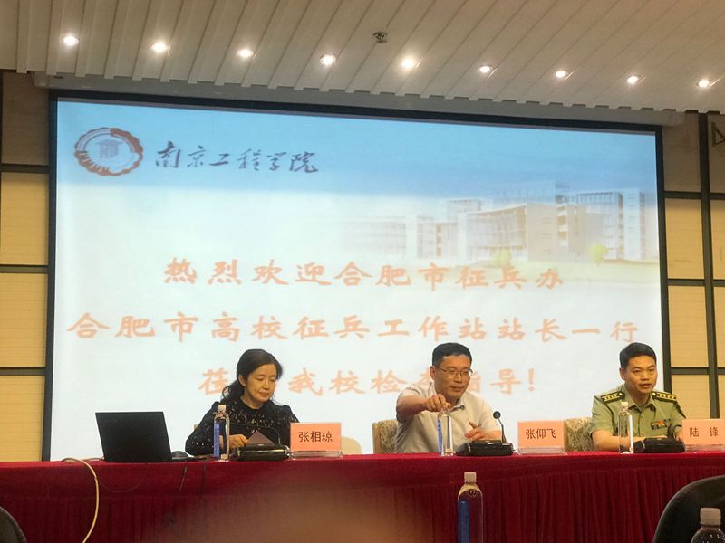 (南京工程学院副院长张仰飞和学生处处长张相琼做大学生征兵工作相关介绍)