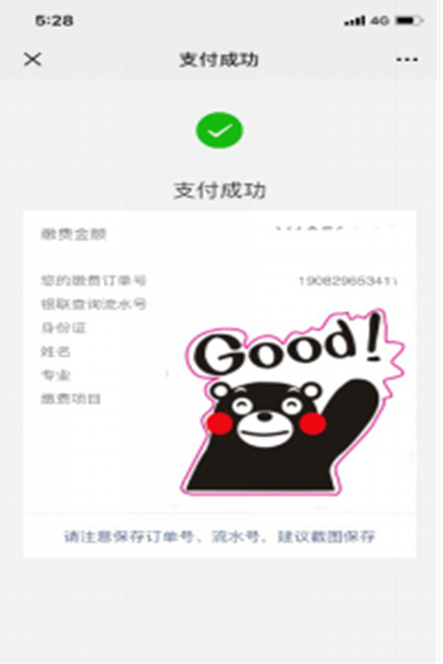 线上支付成功后请将支付成功页面截图保存,作为报到凭据。