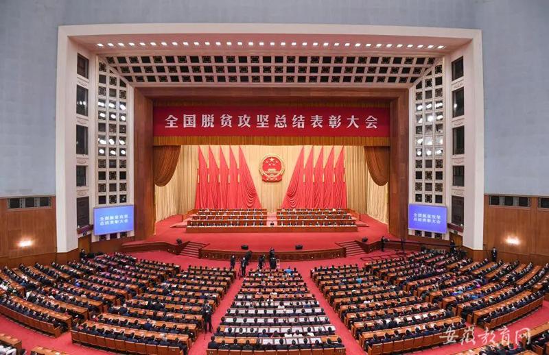 今天,我们隆重召开大会,庄严宣告,经过全党全国各族人民共同努力,在迎来中国共产党成立一百周年的重要时刻,我国脱贫攻坚战取得了全面胜利,现行标准下9899万农村贫困人口全部脱贫,832个贫困县全部摘帽,12.8万个贫困村全部出列,区域性整体贫困得到解决,完成了消除绝对贫困的艰巨任务,创造了又一个彪炳史册的人间奇迹!这是中国人民的伟大光荣,是中国共产党的伟大光荣,是中华民族的伟大光荣!