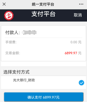 如上图所示,确定支付金额无误后,点击确定缴费后,进入下图所示,