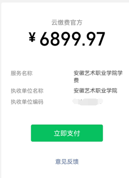 1. 通过支付宝、微信缴费时,请确认收款方名称:安徽艺术职业学院